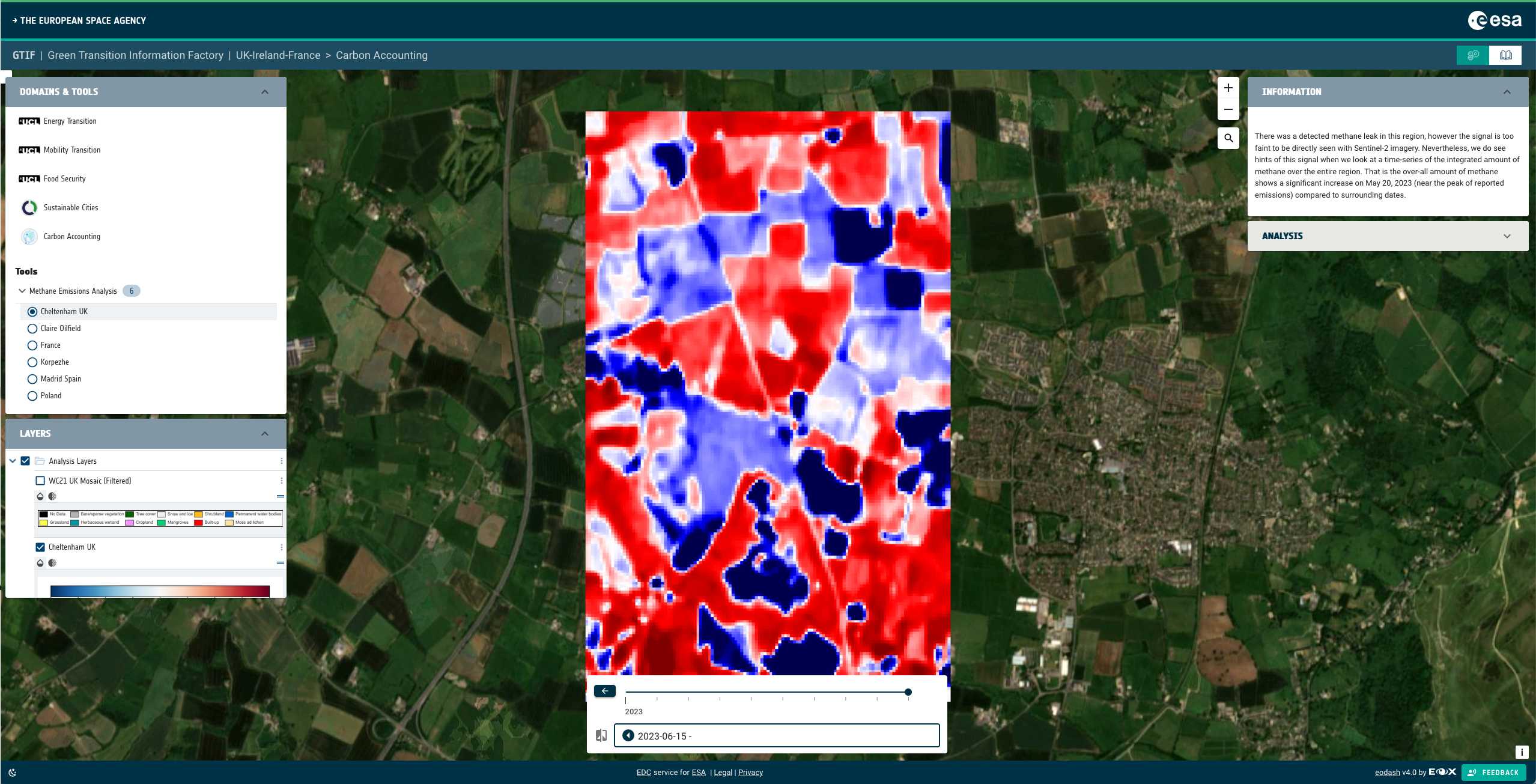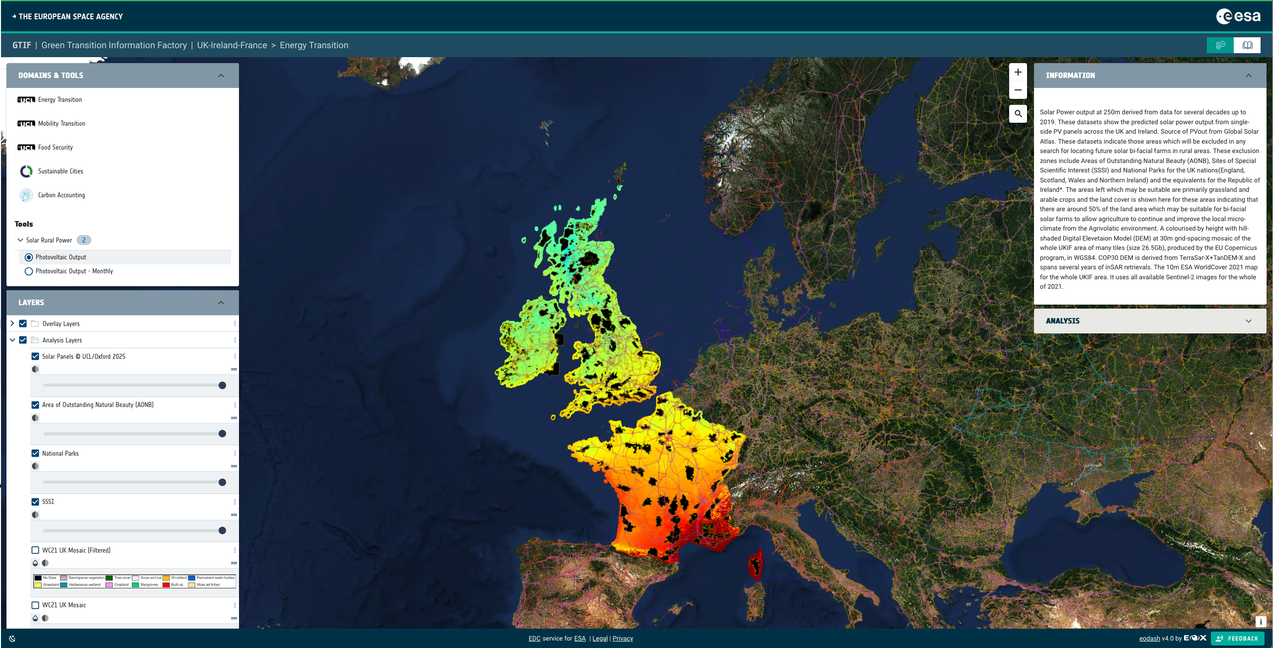 All of these products and associated services are mounted on a single platform and available through one unified UIX which includes simple modelling (e.g. how much solar power could have been generated on 15 July 2023 cf 15 July 2024 taking into account cloud cover and the underlying LULC). Processing had been done on existing free services such as the Copernicus Land Monitoring S2GM (Sentinel-2 Global Mosaics) Service, on cloud services and in-house at the partners. The platform had been developed by one partner on their own cloud service system. The ESA Network of Resources (NoR) is being used to store those products associated with all 5 capabilities and eventually generate them.